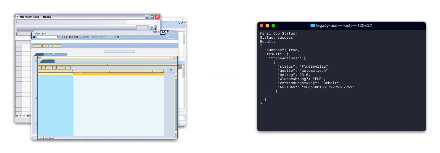 legacy-use allows to expose legacy applications with REST-APIs, enabling you to build reliable solutions and automate workflows where it was not possible before
